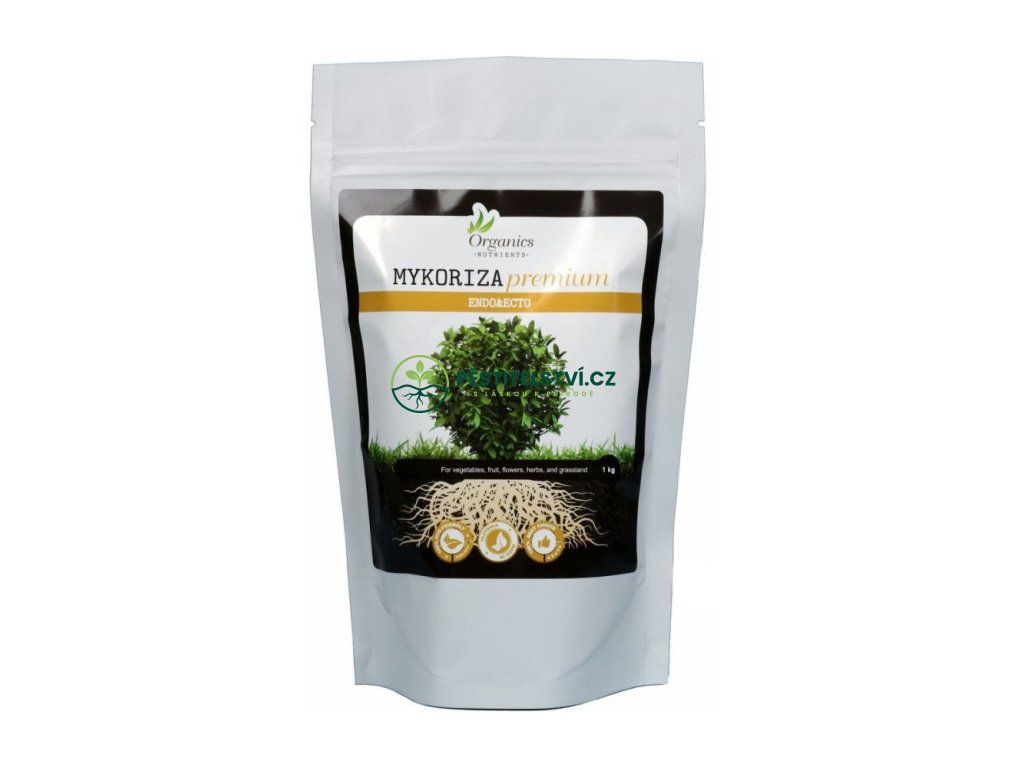 Organics Nutrients Mykoriza Premium obsahuje zcela organický koncentrovaný prášek mykorhizních hub Endo&Ecto, prospěšných bakterií, mikroorganismů a Trichodermu. Tohle složení extrémně zvyšuje růst kořenového systému (až o 400%), což rostlinám umožní lepší zásobování živinami a posiluje jejich imunitu. Rostliny budou produktivnější, zdravější a výnos bude kvalitnější. Výraz mycorrhizae se používá pro skupinu hub, které tvoří symbiotický vztah ke kořenům. Malé kořínky se rozšiřují do půdy a zvětšují až o 400% růst kořenového systému. Rostliny je třeba méně hnojit, jsou odolnější a výnos bude kvalitnější. Zároveň klesá potřeba zalévání. Mycorrhizae obsahuje: - 9 druhů endo mykorhizních hub Glomus claraum, G. intraradices, G. mosseae, G. deserticola, G. monosporum, G. aggregatum, Paraglomus brasilianum, Gigaspora margarita a G. etunicatum - 9 druhů ekto mykorhizních hub Rhizopogon villosullus, R. luteolus, R. amylopogan, R. fulvigeba, Pisolithus tinctorius, Laccaria bicolor, L. laccata, Scleroderma cepa a S. citrinum - Trichoderma - prospěšné mikroorganismy - prospěšné bakterie - stopové prvkyDoplňkové parametry