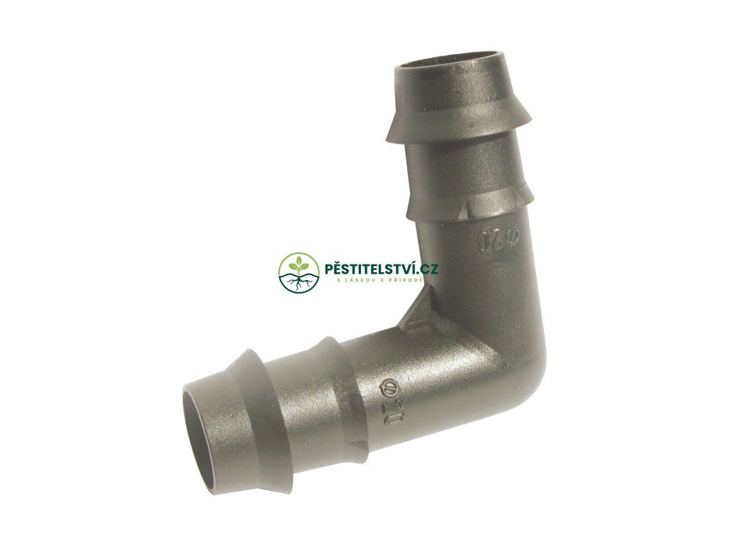 Plastové koleno, L spoj, do závlahy. Průměr 16 mm.