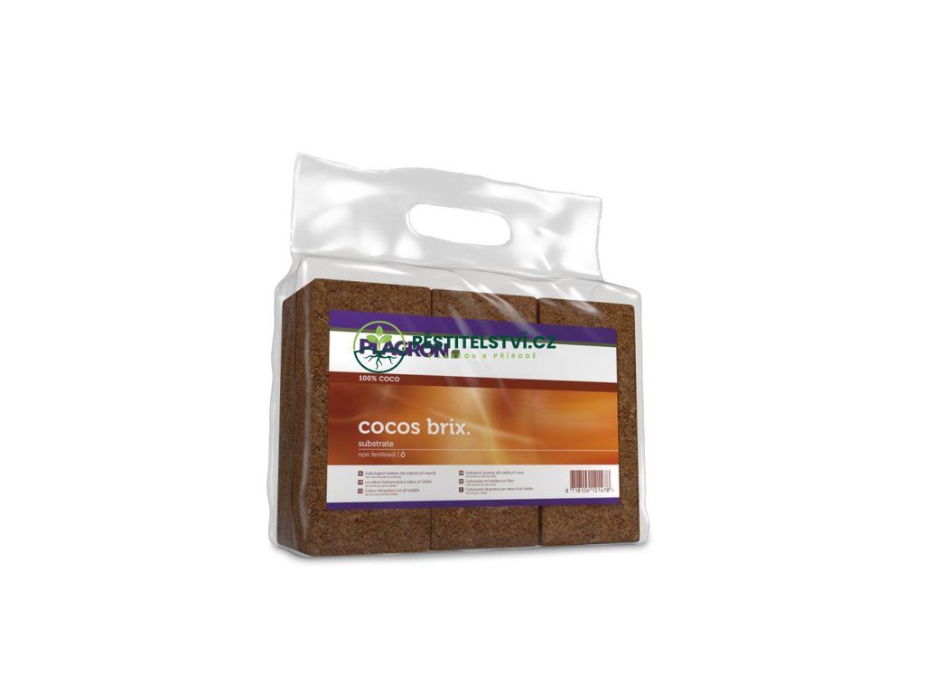 Čistý a přírodní kokosový substrát Plagron Cocos Brix v podobě lisovaných dehydrovaných briket. Vlákna byla nejdříve ošetřena dusičnanem vápenatým a pak důkladně propláchnuta vodou. Tento substrát tak neobsahuje žádná hnojiva a garantuje nízké EC a stabilní pH hodnoty. Kokosové brikety lze smíchat s hlínou Plagron a tím vylepšit jejich strukturu a fyzikální vlastnosti. Vysoká schopnost retence umožňuje dobré hospodaření s vodou.