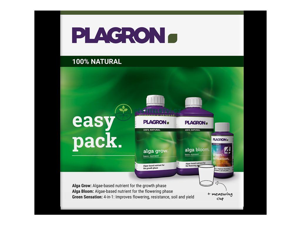 Balení Easy Pack 100% NATURAL obsahuje všechny živiny potřebné k pěstování až čtyř rostlin od začátku do konce. Závisí na velikosti květináče, četnosti zalévání a množství zálivky. Plagron Pack obsahuje organické základní živiny pro fázi růstu a kvetení a top produkt 4 v 1 Green Sensation.Doplňkové parametry