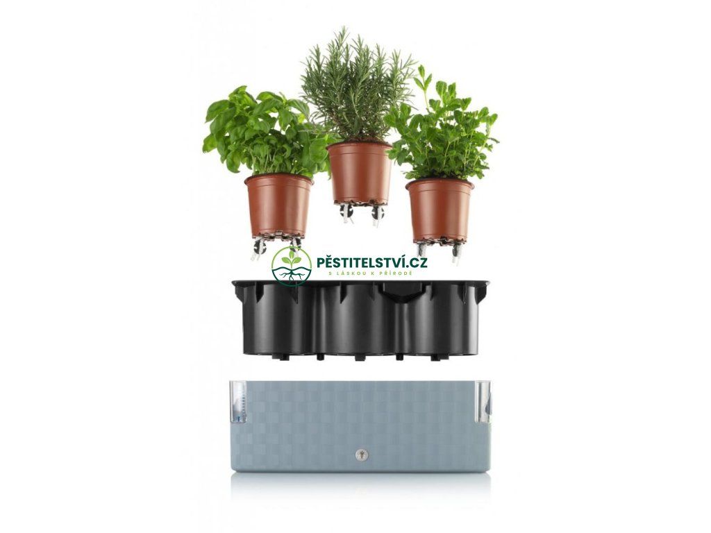 Plastkon Cobble Trio zahrnuje tři chytré květináče s knotovým zavlažováním, které se hodí pro domácí pěstování bylinek a květin. Hodí se na parapet, balkón, terasu. Celkové rozměry Cobble Trio 39.7x14x14 cm.