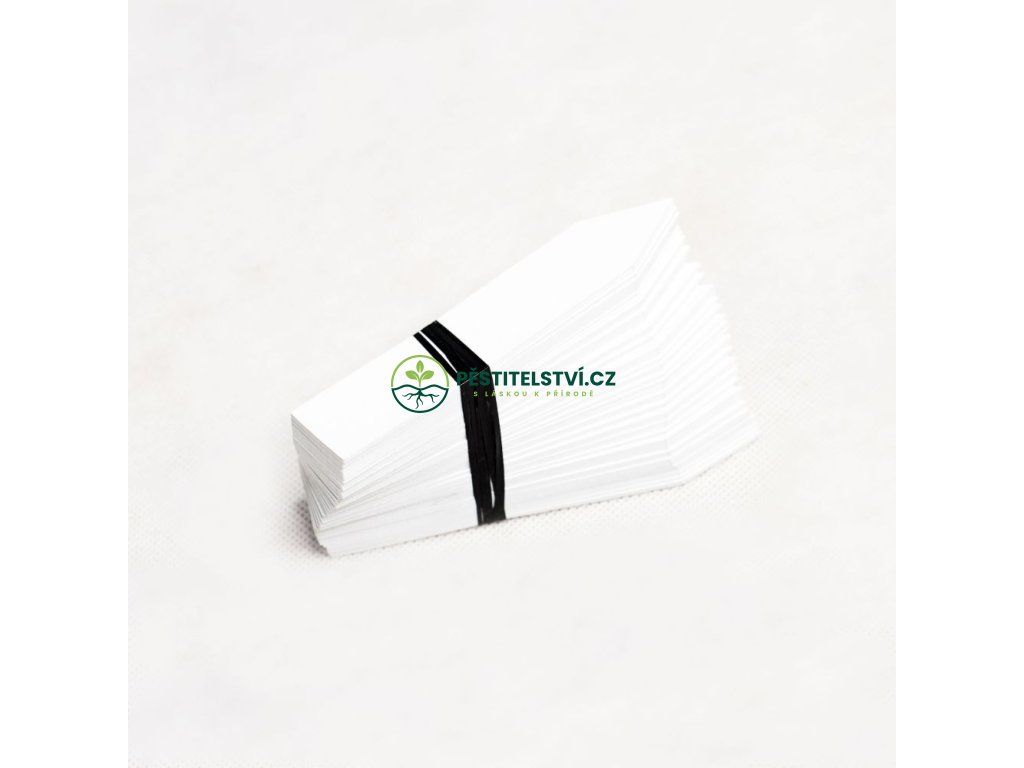 Popisovací štítky do květináče. Bílé. Balení obsahuje 100 kusů.