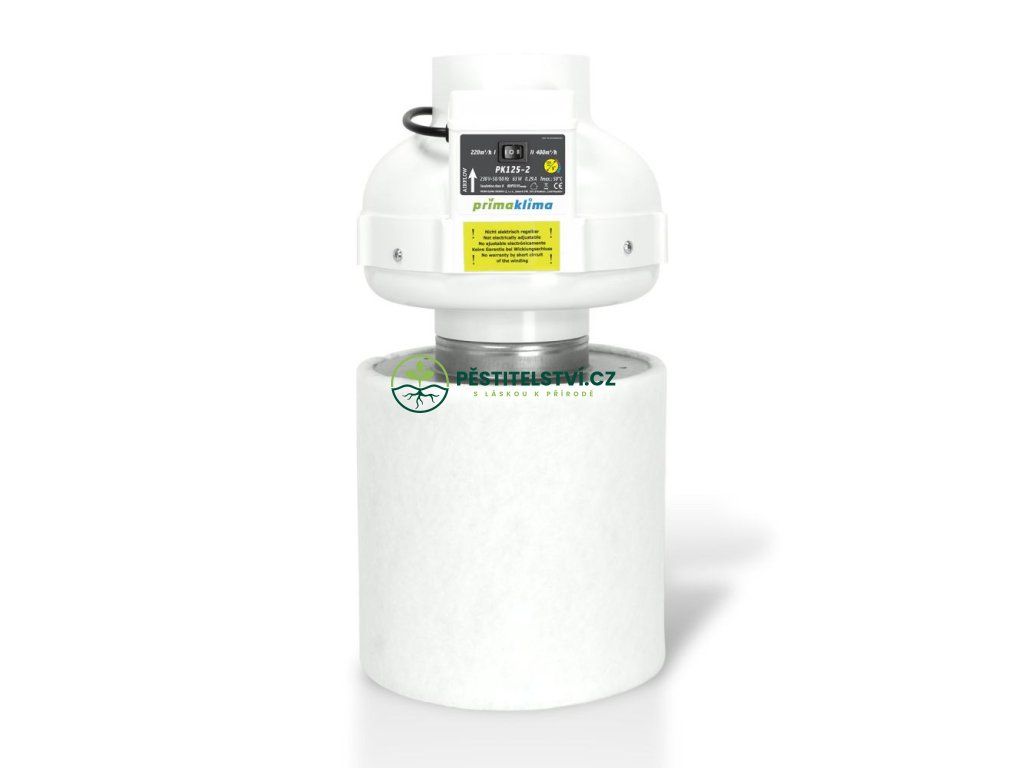 Prima Klima Kombo Kit s dvourychlostním ventilátorem PK125-2 a s filtrem s aktivním uhlím Eco line K2601-flat-125 je jedním z nejúčinnějších a nejtišších filtračních systémů na světě. Balení obsahuje držák na ventilátor.