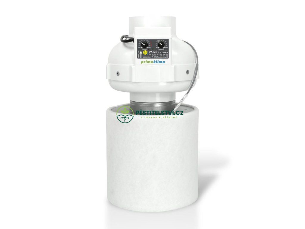 Prima Klima Kombo Kit s ventilátorem PK125-TC (s regulací otáček dle teploty) a s filtrem s aktivním uhlím Eco line K2601-flat-125 je jedním z nejúčinnějších a nejtišších filtračních systémů na světě. Balení obsahuje držák na ventilátor.