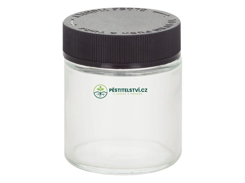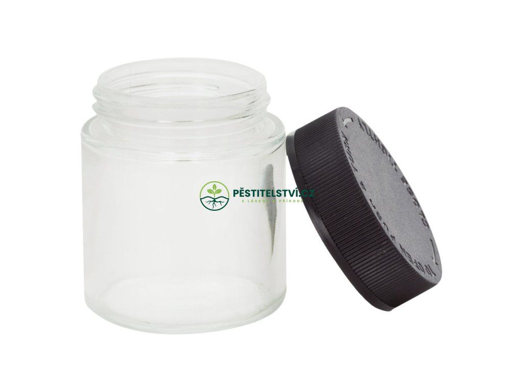 Průhledná sklenice se šroubovacím černým víkem Qnubu California Safe Pack. Borosilikátové sklo. Objem 120 ml. Průměr 6 cm, výška 7 cm, hmotnost 0.12 kg. Box obsahuje 50 kusů.