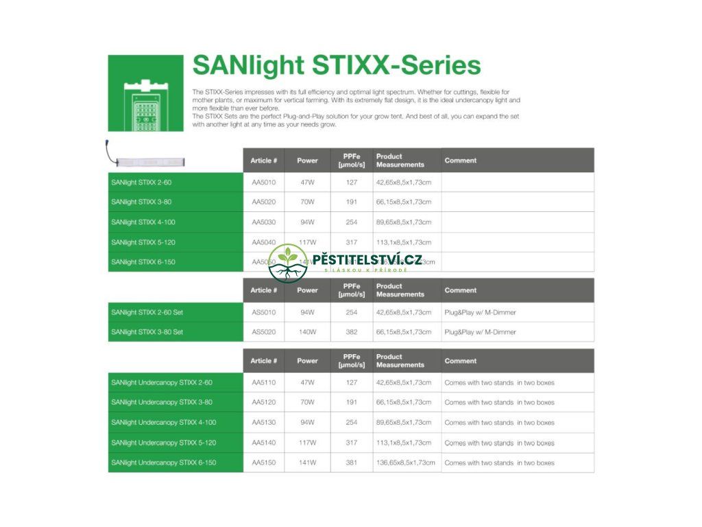 SANlight STIXX je vysoce účinný LED osvětlovací systém pro rostliny určený pro vnitřní použití. Díky krytí IP68, LED diodám s plným spektrem, úhlu vyzařování 90/135° a extrémně plochému designu je ideální pro velké baldachýny, vertikální zemědělské regály, zeleninu a mateřské rostliny, stejně jako pro instalace s nízkou výškou. Produkt neobsahuje: ovladač, kabel ani příslušenství. Všechny tyto položky se prodávají samostatně.