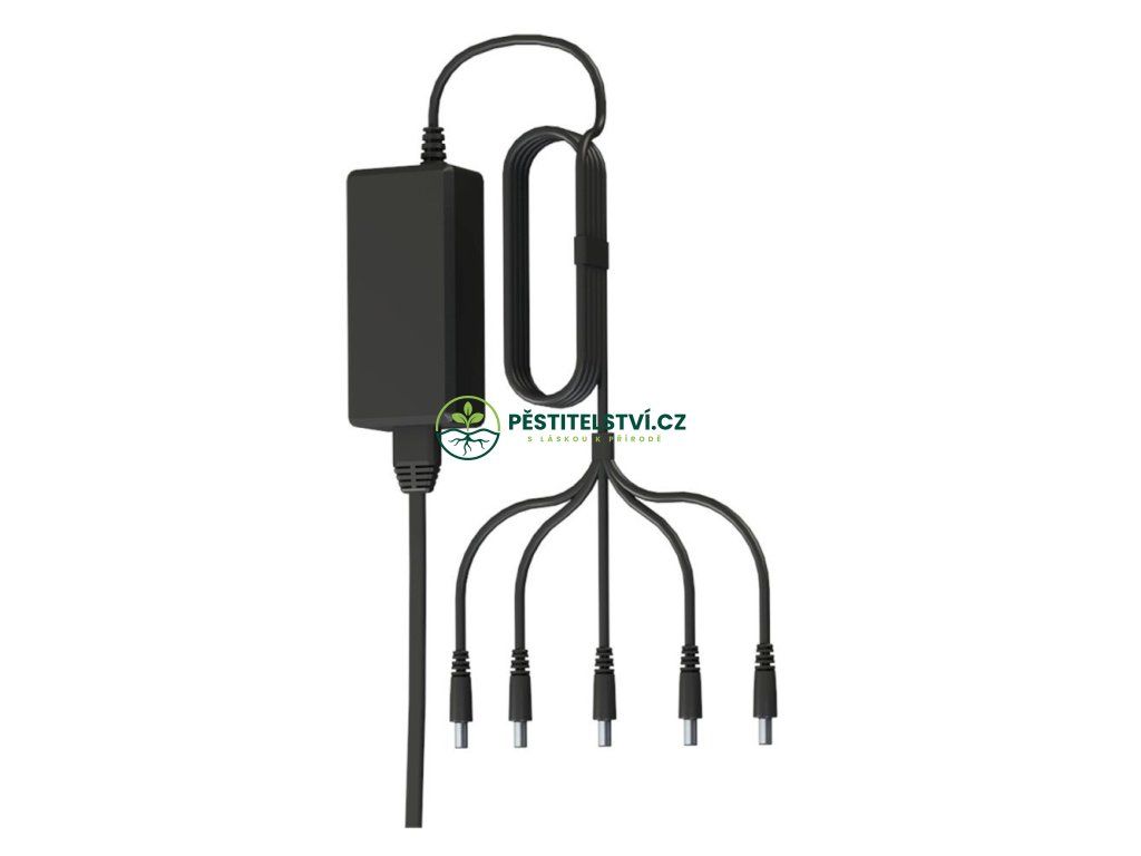 Secret Jardin Cosmorrow® Power 4/5x 20w - Zdroj s příslušenstvím pro 4-5 Cosmorrow 20W LED svítidel. Balení obsahuje trafo s připojením pro 5 svítidla, UK/US/EU zástrčku, 2x kovový háček na zavěšení, 2x rope ratchet, 2x plastovou spojku pro 5 svítidel.