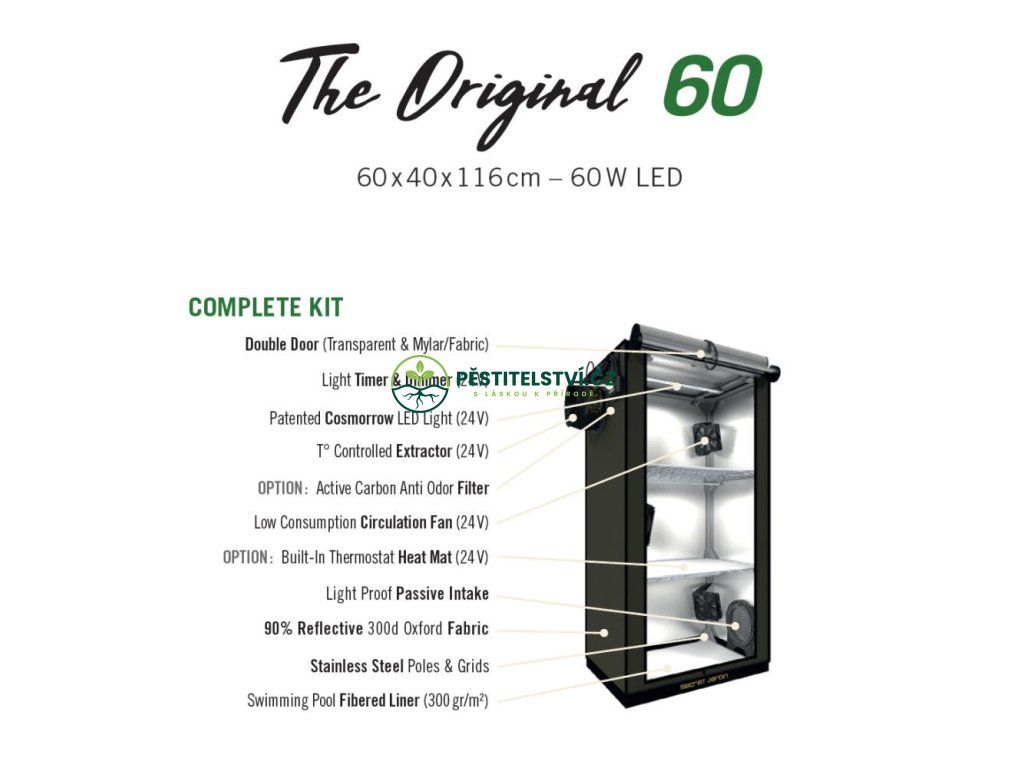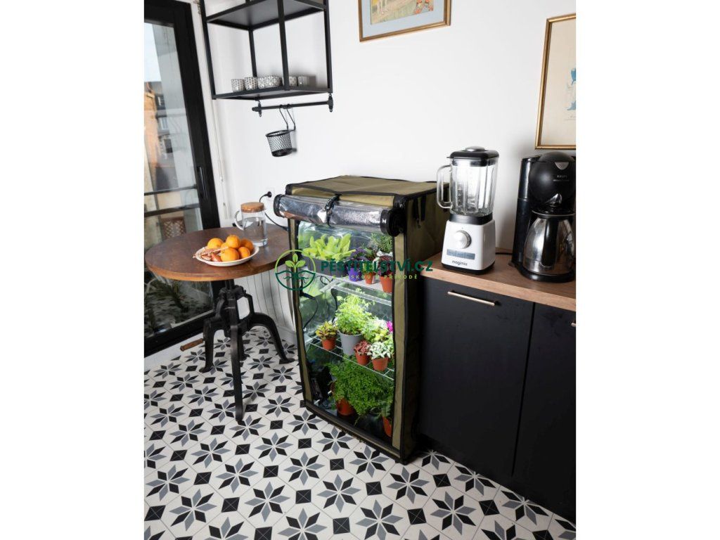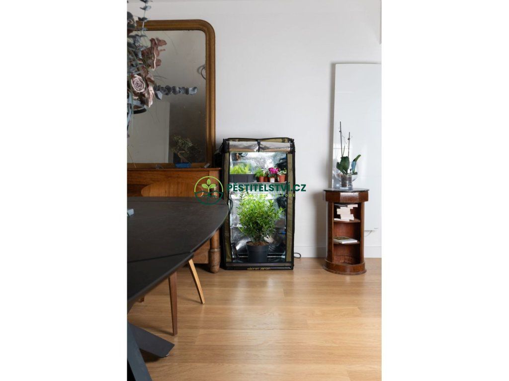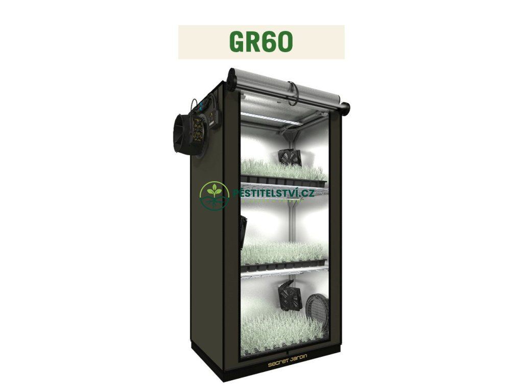 Secret Jardin GR60 The Original 60x40x116 cm je sada, která obsahuje veškeré vybavení potřebné k zahájení indoor pěstování: stan, LED osvětlení na růst, ventilační systém, cirkulační ventilátor a mnoho dalšího. Je určena pro klíčení, předpěstování nebo microgreens.