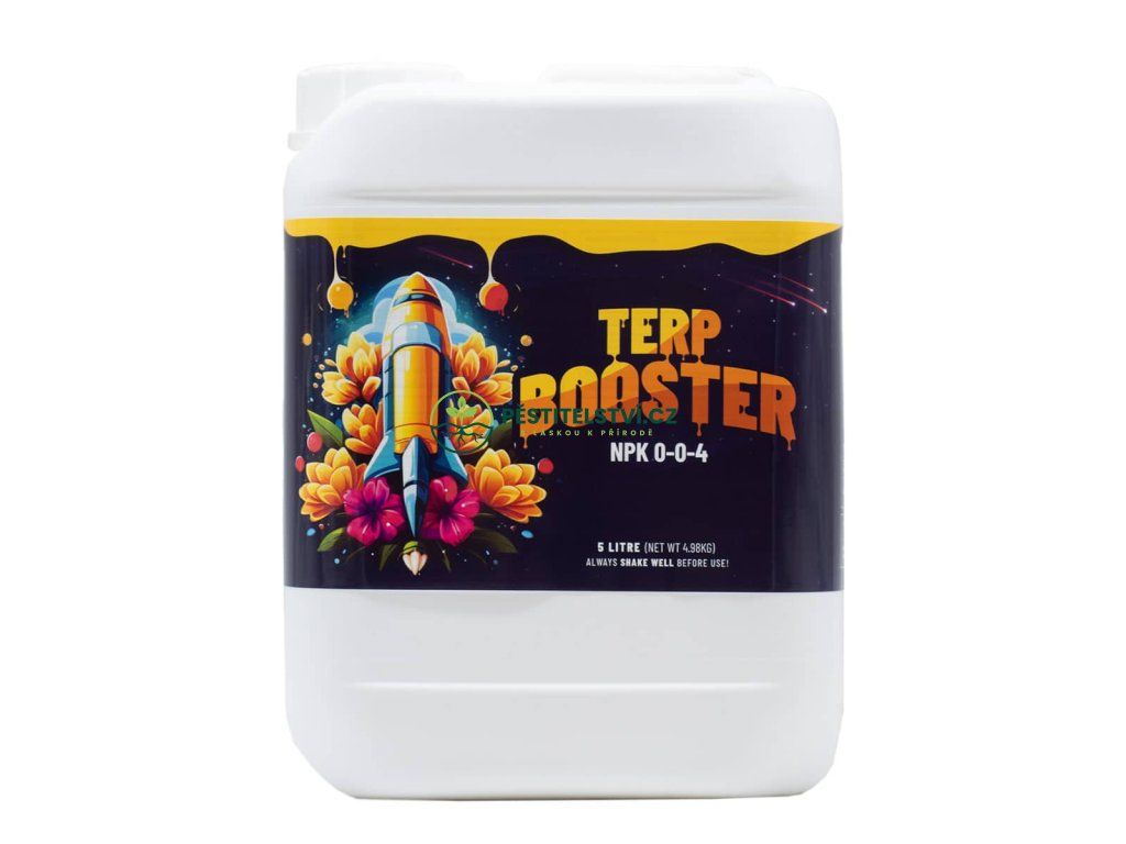 Terp Booster zvyšuje počet květenství i produktci olejů a terpenů. Vylepšuje vůni a chuť. Vhodný pro všechny metody pěstování (zemina, kokos, hydro) a substráty. Je kompatibilní s většinou hnojiv. Používá se do zálivky i jako postřik.
