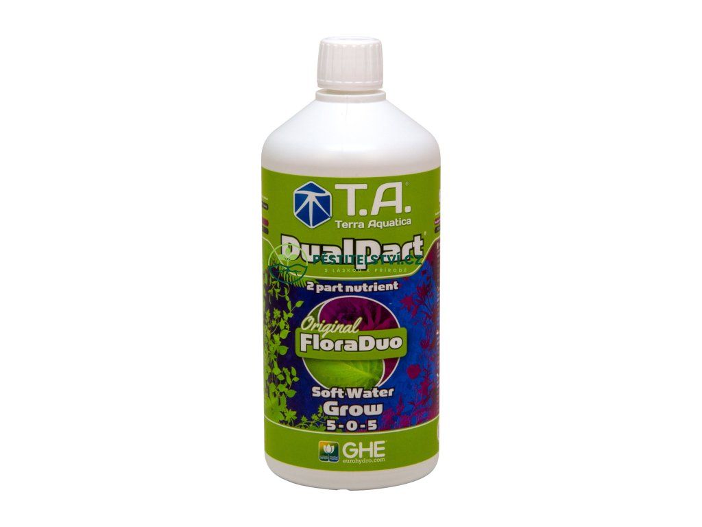 FloraDuo je všeobsahující živina přímo vytvořená pro rychle rostoucí rostliny s významným rozdílem mezi potřebami pro růst a kvetení. Je dodávána ve 2 složkách: FloraDuo Grow (rust) a FloraDuo Bloom (kvetení). Abychom získali ty nejlepší výsledky a prizpusobili živinu pro všechny oblasti, nabízíme „Grow“ ve 2 verzích: jednu pro tvrdou vodu a jednu pro měkkou vodu. FloraDuo Grow “soft water – mekká voda” je určena pro demineralizovanou vodu a vodu s reverzní osmózou.