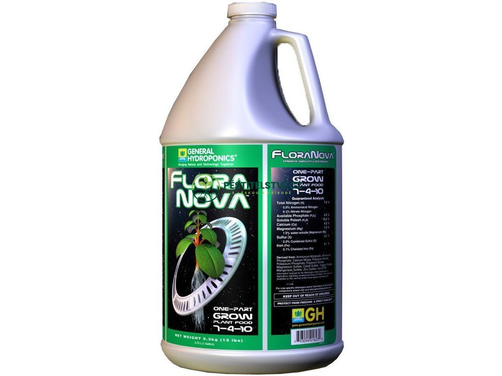 FloraNova Grow je vysoce koncentrované jednosložkové hnojivo pro růstovou fázi vašich rostlin. Je vhodný pro hydroponii i pro půdu. Pro půdu použijte nižší koncentrace.Jedná se o nejnovější organominerální výživu firmy GHE. Jedna lahev obsahuje jak základní živné prvky, tak i celou řadu mikroprvků.