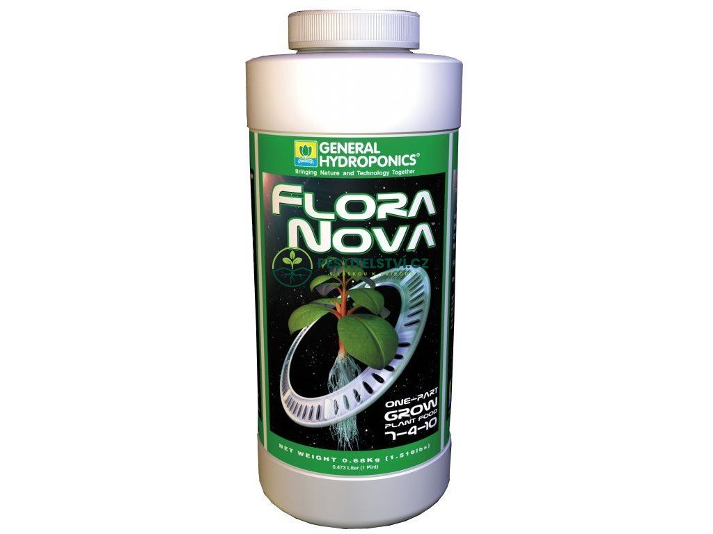 FloraNova Grow je vysoce koncentrované jednosložkové hnojivo pro růstovou fázi vašich rostlin. Je vhodný pro hydroponii i pro půdu. Pro půdu použijte nižší koncentrace.Jedná se o nejnovější organominerální výživu firmy GHE. Jedna lahev obsahuje jak základní živné prvky, tak i celou řadu mikroprvků.