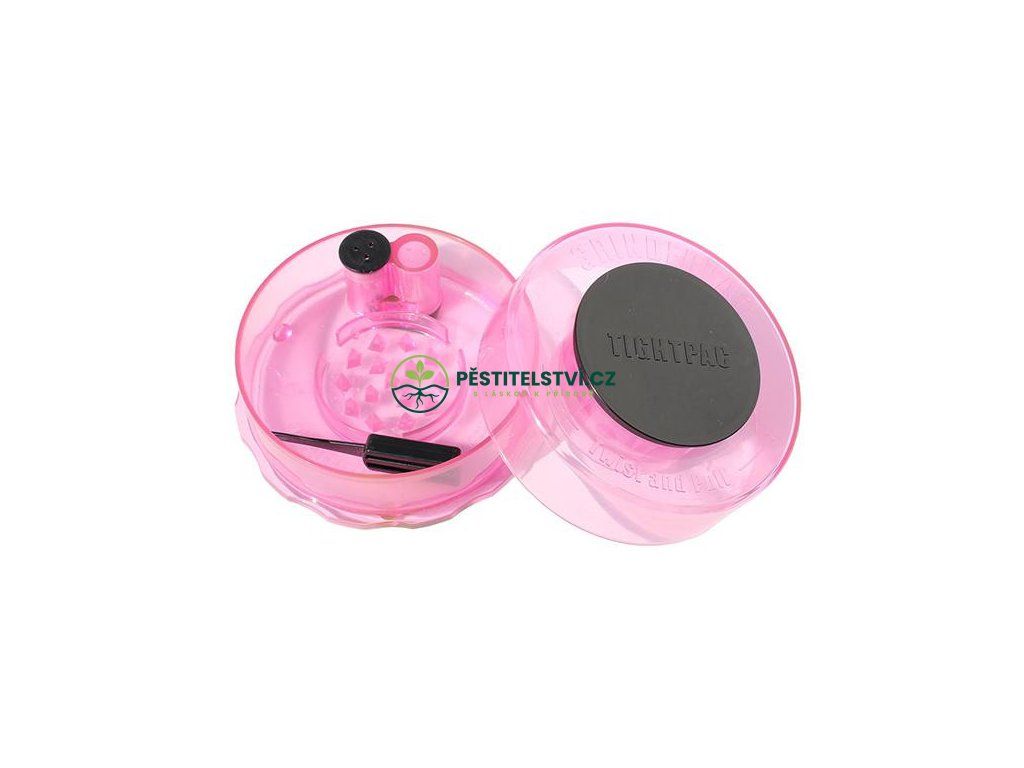TightVac GrinderVac 60 ml, vzduchotěsná dóza s drtičkou průhledná růžová