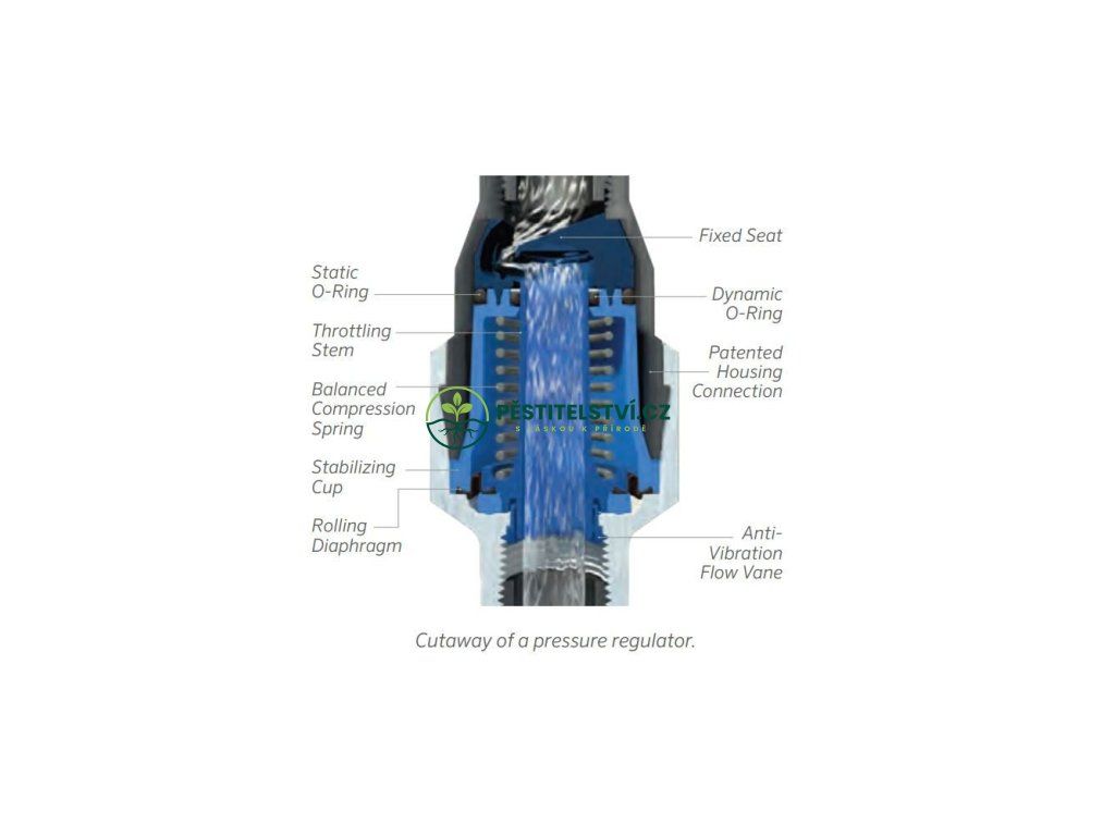 Profesionální plastový redukční ventil Senninger, 1,38 bar, vnitřní závity 3/4", venkovní použití, PN 6