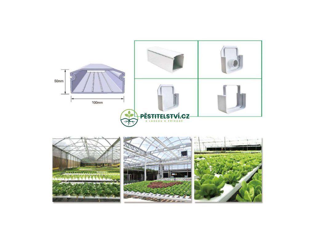 Nízký, jednovrstvý kanál Urban Hydro NFT, průřez 100 x 50 mm, délka tubusu 290 cm. Bílý, zdravotně nezávadný UPVC plast. Bez díry. POUZE PALETOVÁ PŘEPRAVA.