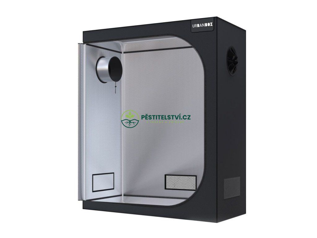 Široký Urbanbox o rozměrech 120x60x180 cm je vhodný pro indoor pěstování pod osvětlením s příkonem cca 120-200W. Growbox se stabilní konstrukcí (tyče 16 mm) a vyztuženými plastovými rohy je vybaven také odolnými a neprůsvitnými zipy. Pěstební stan z kvalitní a pevné tkaniny Mylar 600D Oxford disponuje vnitřní fólií Mylar s vysokou odrazivostí. Ventilátory a pachové filtry snadno připevníte pomocí závěsných popruhů. O výměnu vzduchu se postarají odtahové a přítahové otvory. Pasivní vstupní otvory jsou chráněny sítkou proti hmyzu. Proti vytopení chrání odnímatelné dno.