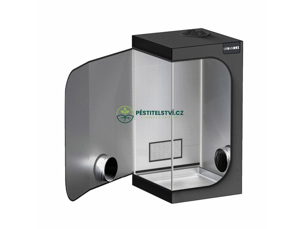 Malý pěstební stan Urbanbox s rozměry 60x60x160 cm je vhodný pro indoor pěstování pod osvětlením s nižším příkonem cca do 60W. Growbox se stabilní konstrukcí (tyče 16 mm) a vyztuženými plastovými rohy je vybaven také odolnými a neprůsvitnými zipy. Pěstební stan z kvalitní a pevné tkaniny Mylar 600D Oxford disponuje vnitřní fólií Mylar s vysokou odrazivostí. Ventilátory a pachové filtry snadno připevníte pomocí závěsných popruhů. O výměnu vzduchu se postarají odtahové a přítahové otvory. Pasivní vstupní otvory jsou chráněny sítkou proti hmyzu. Proti vytopení chrání odnímatelné dno.Doplňkové parametry