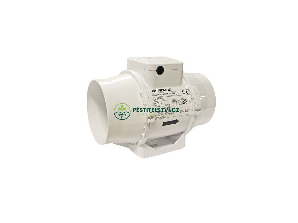 Ventilátor do potrubí Vents TT 125 o průměru 125 mm s kuličkovými ložisky. Díky své konstrukci je na tomto ventilátoru snadná údržba. Ventilátor je možné zapojit na dva různé stupně výkonnosti a přepínat pomocí externího spínače. Motor je opatřen tepelnou pojistkou. Ventilátor najde své uplatnění v malých a středně velkých místnostech jako jsou WC, kuchyně, kanceláře, skleníky, pěstební stany apod. Díky svým technickým parametrům je určen pro odsávání v potrubních rozvodech na středních vzdálenostech. Kuličková ložiska vám prodlouží životnost vašeho ventilátoru na 40000 hodin. Ventilátor lze instalovat vertikálně i horizontálně.