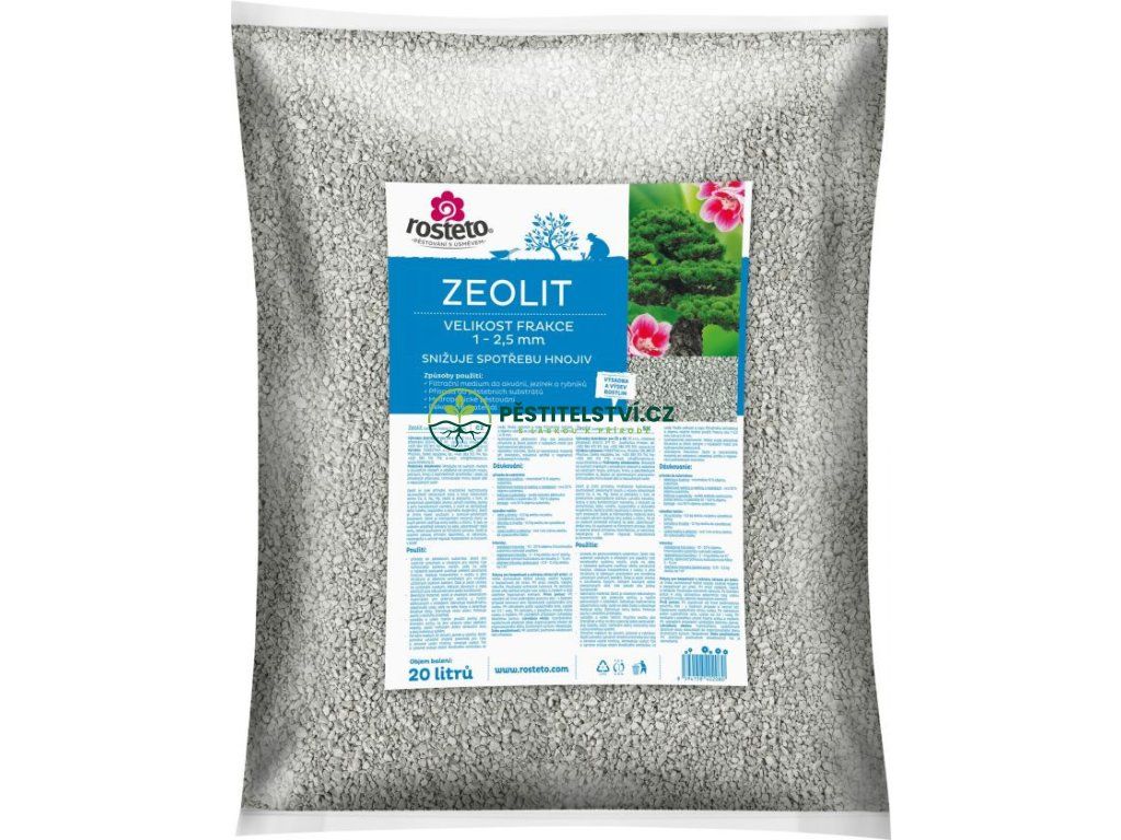 Zeolit frakce 1-2.5 mm je krystalický hydratovaný alumosilikát alkalických kovů a kovů alkalických zemin Ca, K, Na, Mg přírodního původu. Používá se jako příměs do pěstebních substrátů, při výsadbě, hydroponickém pěstování jako médium, ale i do zahradních jezírek, akvárií nebo při zakládání trávníků i jako dekorace. Mikroporézní materiál má příznivý vliv na kvalitu vody i vývoj rostlin.Doplňkové parametry