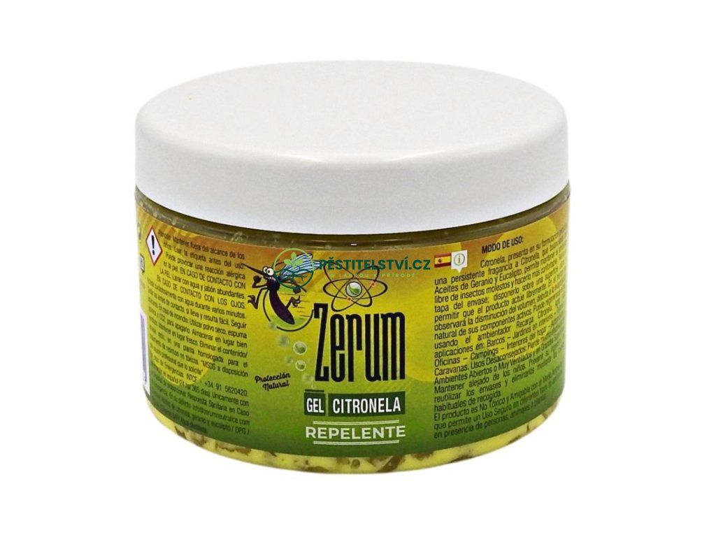 Univerzální, netoxický a účinný neutralizér zápachu Zerum PRO Gel Citronela Repelent, 400 g je repelentní neutralizátor s exkluzivním složením. Má vytrvalou citrusovou vůni, která v rovnováze s oleji z pelargónie a eukalyptu umožňuje udržet prostředí bez otravného hmyzu.Doplňkové parametry