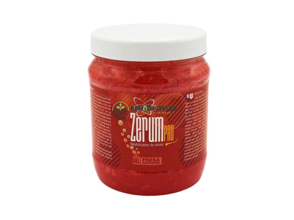 Netoxický profesionální neutralizátor zápachu Zerum PRO Gel se velmi snadno používá. Obsahuje silnou látku pohlcující zápach. K dostání v balení po 400 g, 900 g, 3,3 kg, 5 kg, 12,5 kg a v 5 vůních: lesní jahoda (Fresa silvestre), meloun a červené ovoce (Melón y frutos rojos), máta (Mentolado), neutrální (Neutro), čistá (Limpio). Obecně slouží k neutralizaci pachů v jakémkoli prostoru. Eliminuje zápach z vlhkosti, kouření, auta, koupelny, tabáku, domácích zvířat, koček a psů atd. Zerum PRO Gel je ideální pro neutralizaci a osvěžení pachů z osobních automobilů, karavanů, nákladních automobilů, dodávek a dalších. Odstraňuje tak veškeré stopy nepříjemného zápachu. Použití můžete prodloužit použitím Zerum Pro Neutralizer Recarga, protože se jedná o aktivační kapalinu prostředku Zerum PRO Gel. K jeho obnově NEPOUŽÍVEJTE vodu, tím byste pouze obnovili jeho objem, ale nikoliv přítomnost neutralizačního prostředku a jeho účinnost by byla narušena. V otevřeném prostředí, na velkých plochách a/nebo v silně větraných prostorách může dojít ke ztrátě účinnosti. Rovněž je třeba dbát zvýšené opatrnosti v přítomnosti dětí, protože není vhodný k požití. Zerum Gel neutralizátor zápachu je netoxický a šetrný k životnímu prostředí. Uchovávejte mimo dosah dětí a domácích zvířat.Doplňkové parametry